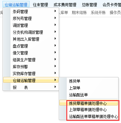 仓储运输管理下面做的单据,在仓储运输管理-仓储运输管理-拣货草稿单处理中心、上架草稿单据处理中心、运输配送单草稿单据处理中心,这3个报表查询。