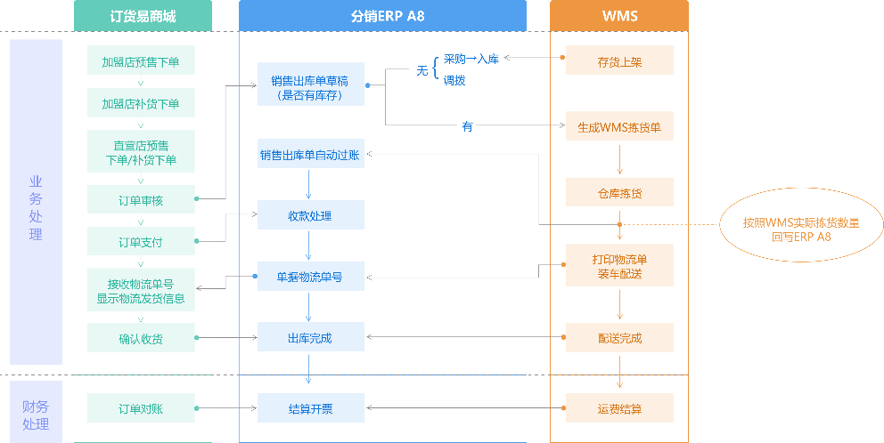 赋能工具:分销ERP A8+订货易+快马+物联通仓储WMS+易零售
