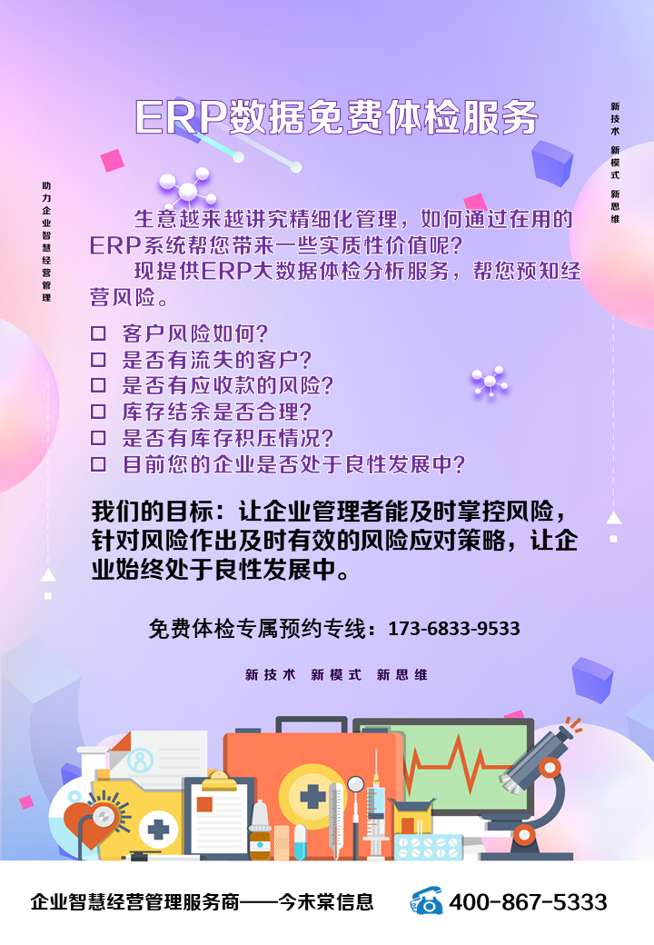 现提供ERP大数据体检分析服务,帮您预知经营风险。