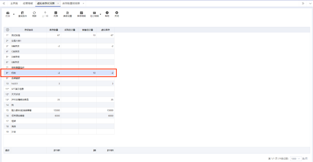 另外在报表页面,我们还可以通过右键将刚才设置的待审核数据展示出来,让用户更直观地看到虚拟库存数据来源。